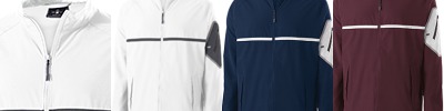 90% polyester/10% spandex, 4-way stretch woven fabric; Woven label; Front zipper with reflective zipper pull and matte tips; Contrast color sleeve pocket with silver media port and reflective metallic silicone welded zipper; Raglan sleeves for maximum mobility; Locking welt front pockets; Dual inside pockets;
