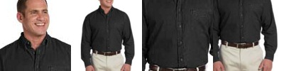 6.5 oz./yd²/220 gsm, 100% cotton denim ; Flat-felled seams; Khaki double-needle topstitching; Signature twill tape at neck; Fully constructed front placket; Signature horn-style buttons with Harriton logo and contrast thread;