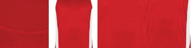- Contrast color raglan sleeves, collar, "V", and waistband